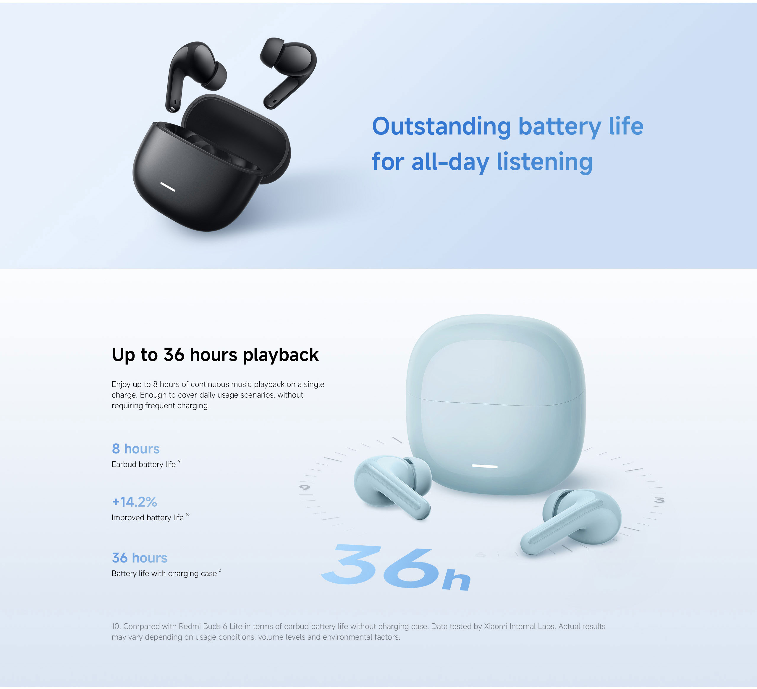 Enjoy up to 6 hours of playback on a single charge, and up to 36 hours total with the compact charging case, plus quick charging that gives several hours of music from a short top-up.