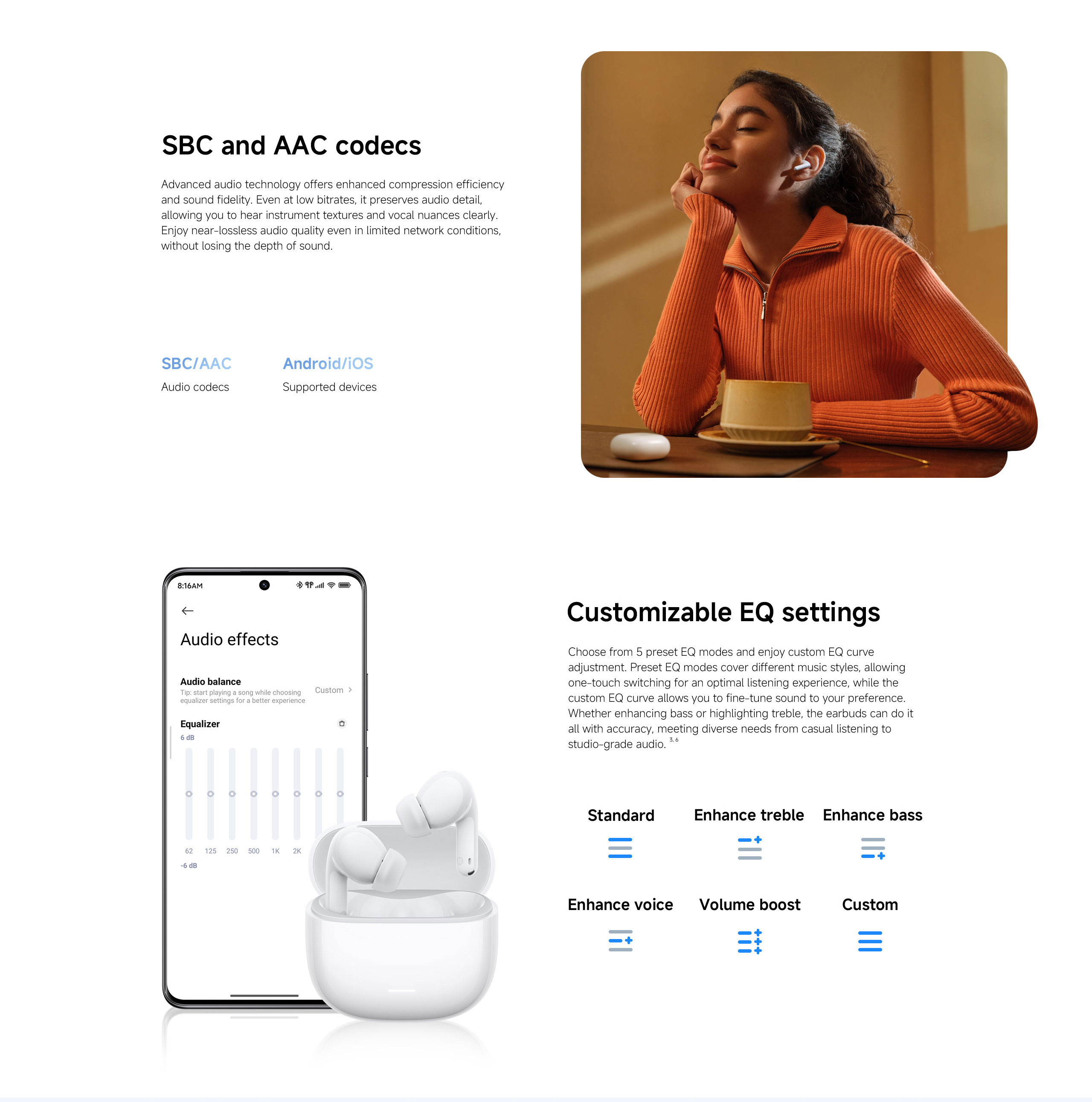 Advanced Bluetooth 5.4 provides a stable, energy‑efficient connection, while low‑latency mode helps synchronize audio and video for smoother mobile gaming and streaming.